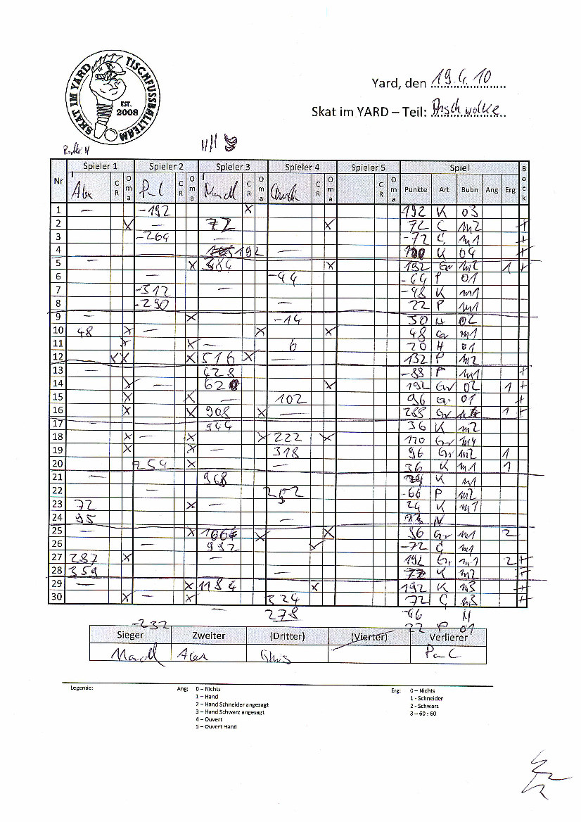 | Nr | Alex | Paul | Marcel | Christian_S | Spiel | Bock | |||||||||