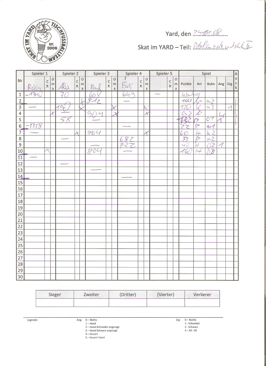 21. | --- | -72 | X | X | X | 88 | Pik mit 2 Schneider | X | |||||||