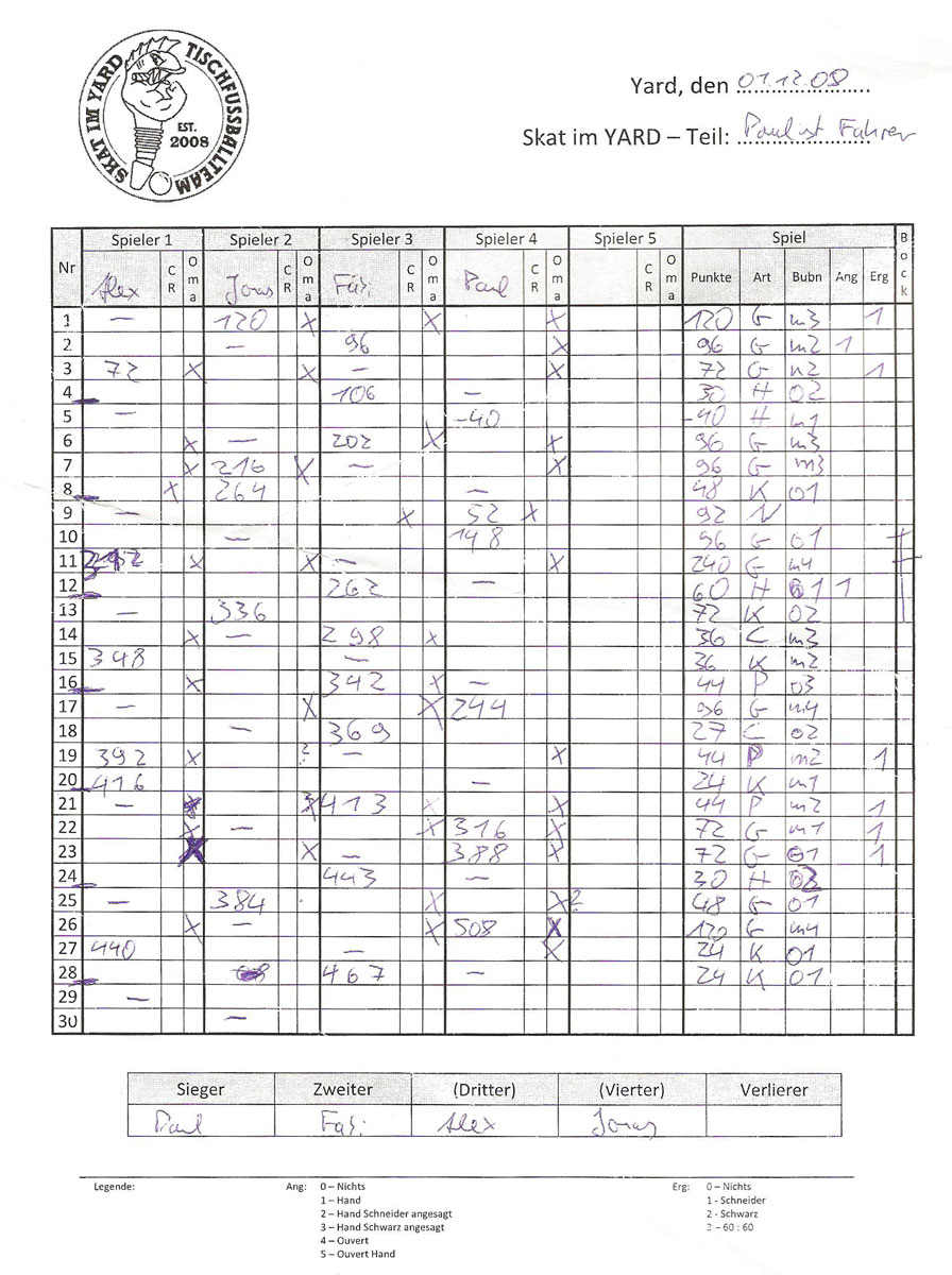| Nr | Alex | Jonas | Fabian | Paul | Spiel | Bock | |||||||||